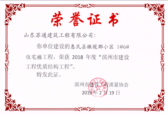 山東蘇通建筑工程有限公司,創(chuàng)建于2009年8月。目前擁有房屋建筑工程施工總承包壹級、市政公用工程施工總承包叁級、水利水電工程施工總承包叁級資質(zhì),同時(shí)還具有建筑裝修裝飾工程專業(yè)承包貳級、消防設(shè)施工程專業(yè)承包貳級、鋼結(jié)構(gòu)工程專業(yè)承包叁級、建筑機(jī)電安裝工程專業(yè)承包叁級等專業(yè)承包資質(zhì)。 公司總部坐落于山東省濱州市濱城區(qū)黃河十二路877號,現(xiàn)有辦公面積約2000平方米,機(jī)構(gòu)設(shè)黨支部工會(huì)辦公室、總經(jīng)理辦公室、綜合辦公室、工程管理部、經(jīng)營預(yù)算部、資產(chǎn)財(cái)務(wù)部、材料設(shè)備部、運(yùn)行管理部、法律事務(wù)部等多個(gè)職能部門。公司管理體系已經(jīng)通過了GB/T 19001及GB/T 50430質(zhì)量管理體系、GB/T 24001環(huán)境管理體系(EMS)、GB/T 28001職業(yè)健康安全管理體系(OHSMS)等體系的認(rèn)證。 公司承建完工了濱州市建大教師之家、建大清怡苑、香格里拉水岸綠城住宅小區(qū)、雙泰建大城、曲阜崇德公館住宅小區(qū)、北海新區(qū)御景藍(lán)灣住宅小區(qū)、沾化德榮國際華城住宅小區(qū)、惠民橄欖郡住宅小區(qū)等工程項(xiàng)目,目前在建工程項(xiàng)目有:濱州市頤高國際電子商務(wù)產(chǎn)業(yè)園住宅小區(qū)項(xiàng)目、濱州市東盛國際項(xiàng)目、高新區(qū)建大中央華府住宅小區(qū)項(xiàng)目、濱州市融匯新里程住宅小區(qū)項(xiàng)目、濱州市建大秦皇壹號住宅小區(qū)項(xiàng)目、濱州市森林花...